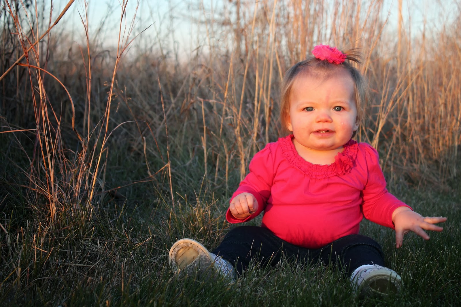 I wanted to get some pictures of Sydney at age 1. We took her to JCP studio on Friday night and that was a complete disaster. Turns out trying to get a 1 year old to stand still for 1 second to get a picture is about impossible. So Brian and I thought we would try and get a picture on our own. We took her to the nature park by our house and had much better success. The key to our success…..we put shoes on Sydney for the first time. She had no idea what to do and stood completely still! It was perfect! Here is a sample of some of the pictures I snapped: